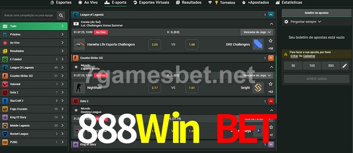 A aposta 888Win Bet oferece aos jogadores a experiência mais conveniente de apostas em eSports!
